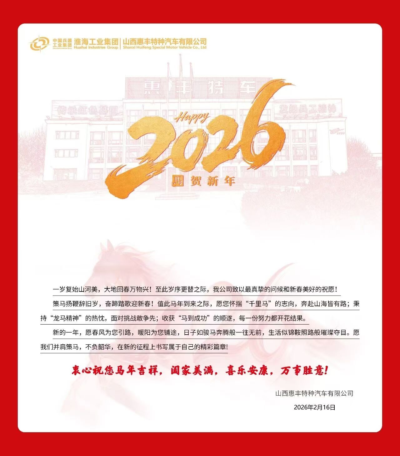 山西惠豐特種汽車有限公司給大家拜年啦!恭祝您及家人闔家美滿,新春快樂!